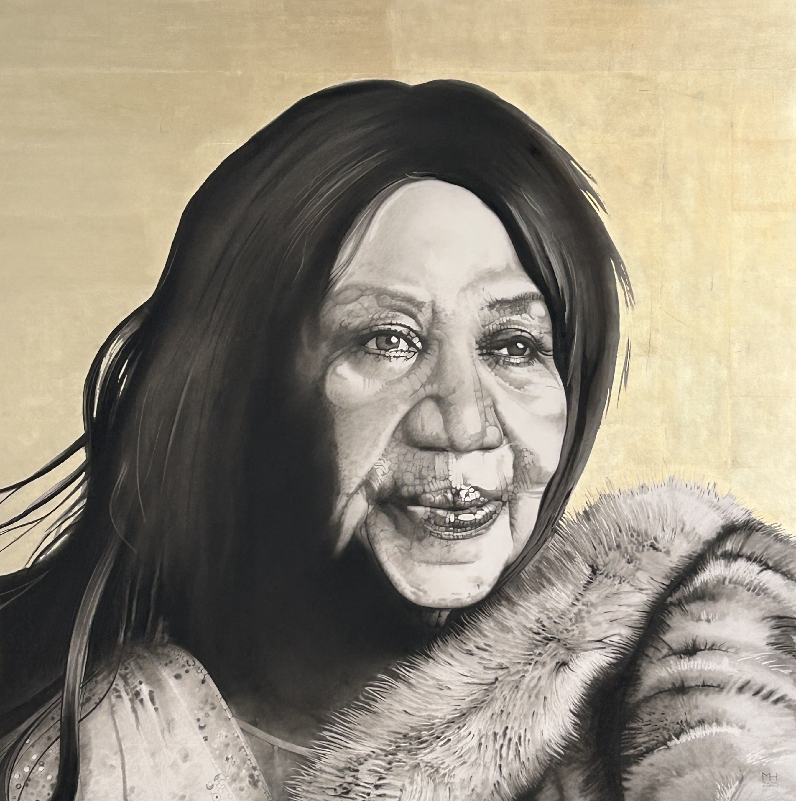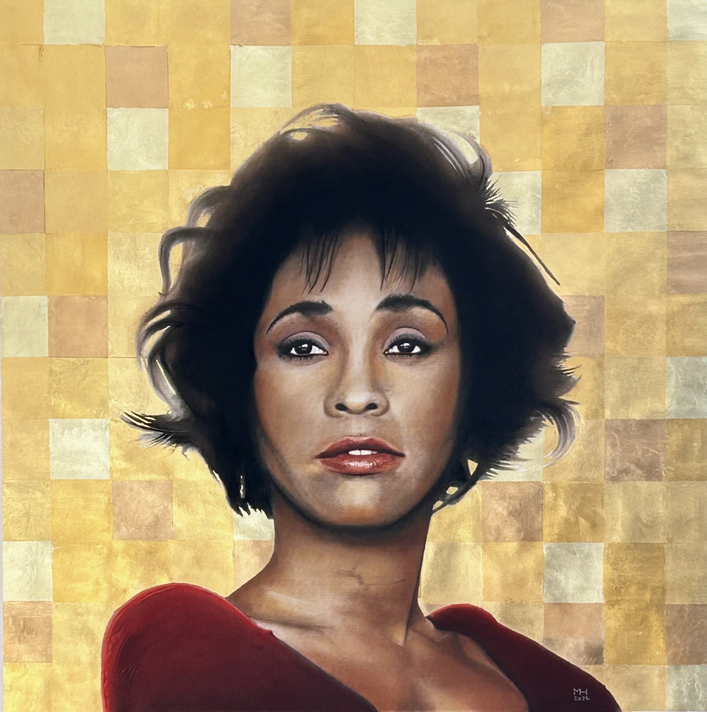 Whitney HoustonKreide, Farbstifte auf Blattgold - H 1000 mm B 1000