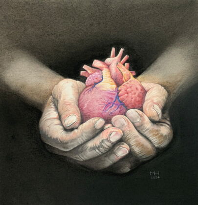 Kohle, Kreide und Farbstift - H 380 mm B 380mm