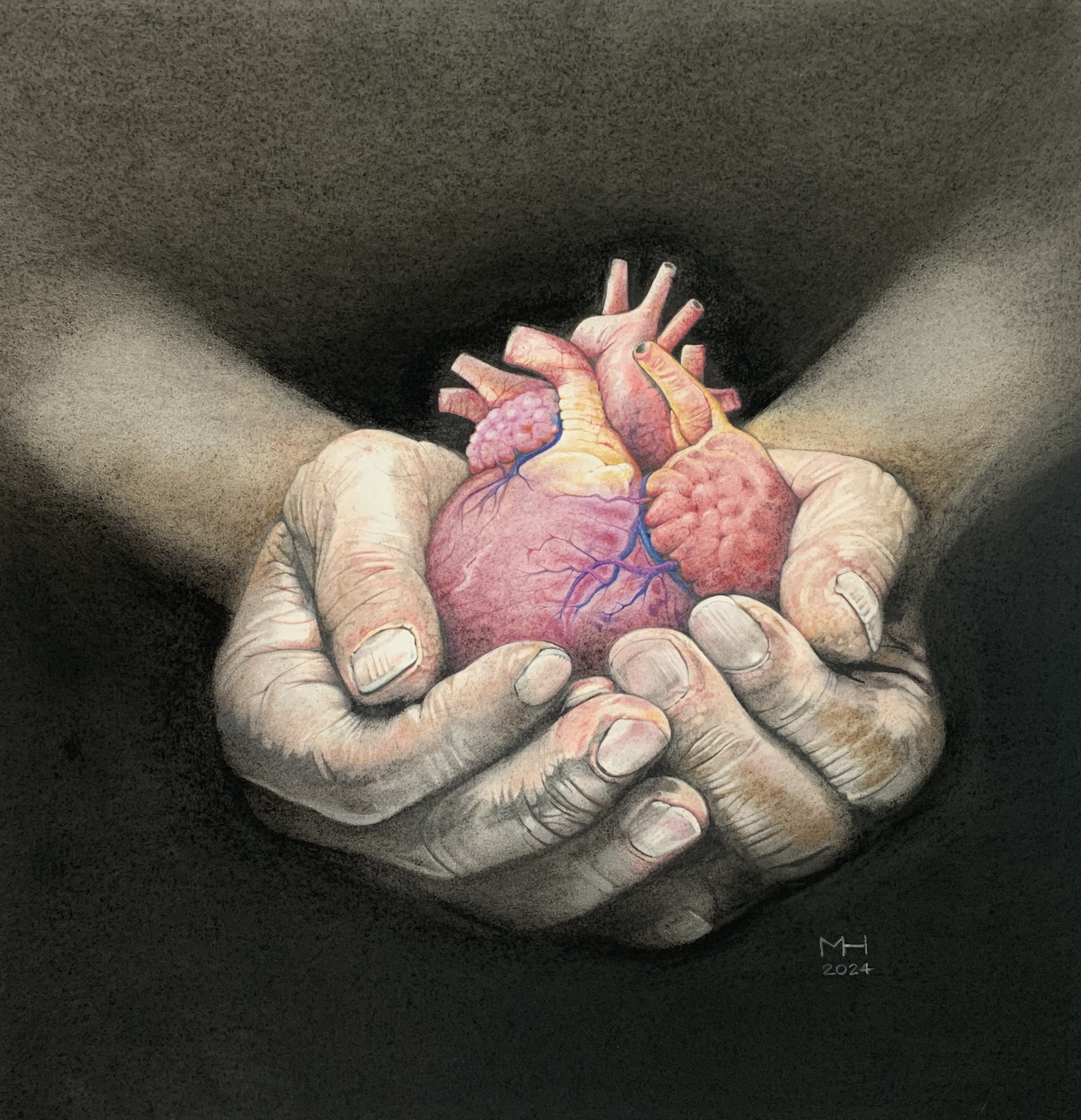 Kohle, Kreide und Farbstift - H 850 mm B 650 mm